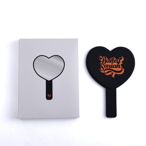 Wholesale Fashion Heart Shape Single Side Silkscreen Printing Black ABS Plastic Mirror